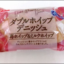 ダブルホイップデニッシュ 苺ホイップミルクホイップ外装と大きさ比較。 左が苺クリーム。右が、ミルククリーム。左右の色が違います。385キロカロリー。原材料表示。 デニッシュというより、表面だけデニッシュのパン。ミルクの方が美味しい。甘さ控えめ、すごく軽い植 ...