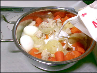 レトルトカレー。湯は、ほぼ入っていません。50mlでいい。